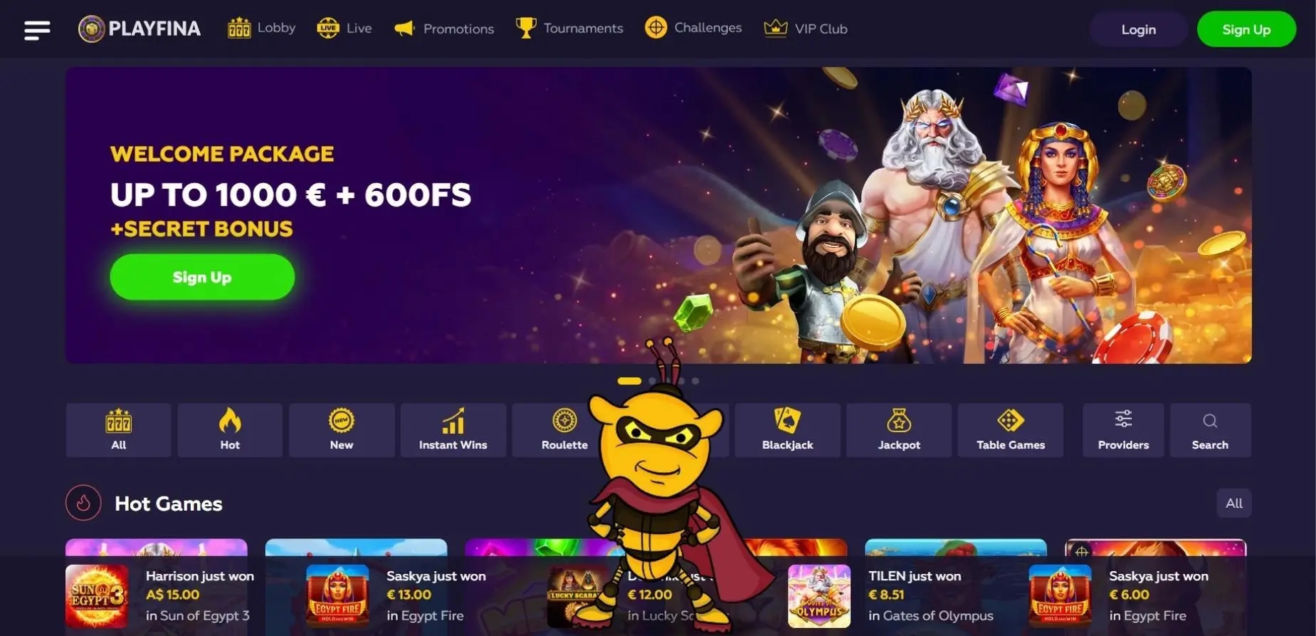 Make sure to use these bonus codes when you sign up or make a deposit at Playfina to maximize your gameplay and chances of winning!